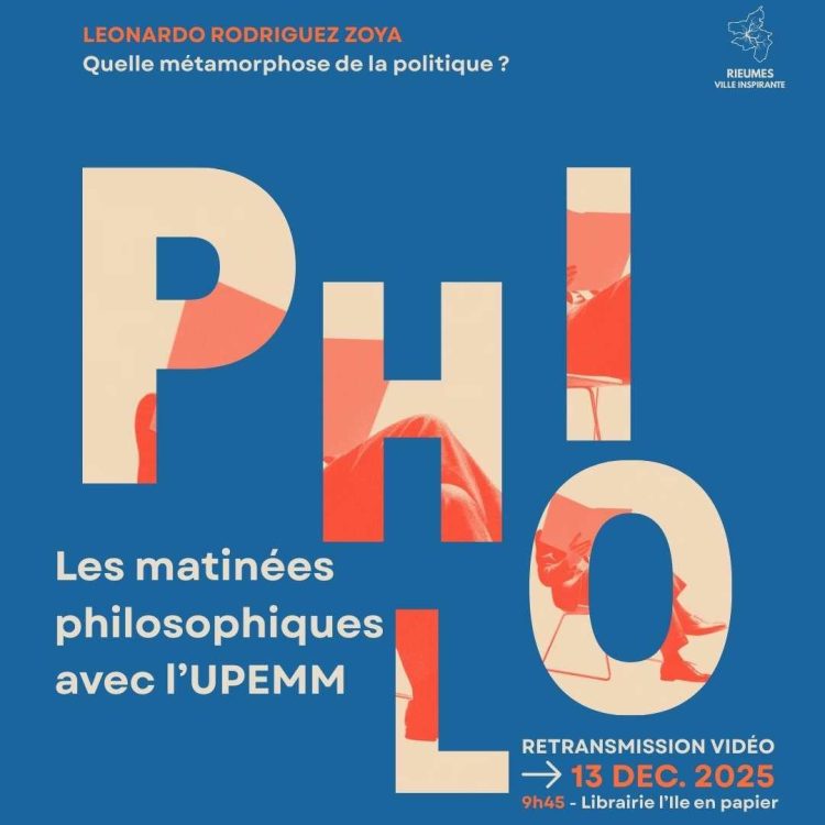 Dans le cadre du projet Rieumes-Ville Inspirante, retransmission vidéo de la conférence de l’UPEMM avec Léonardo Rodriguez Zoya. « Quelle métamorphose de la politique ? »