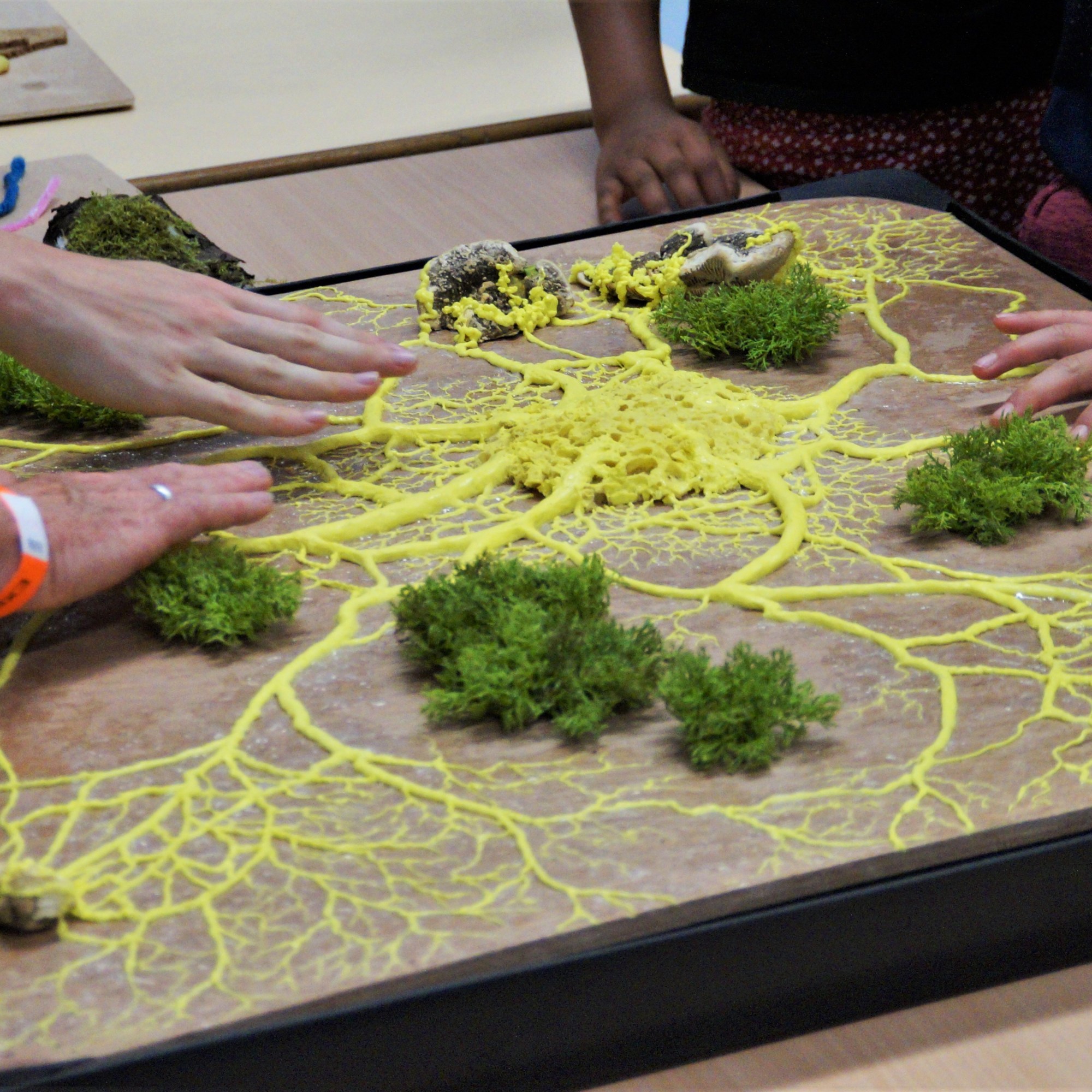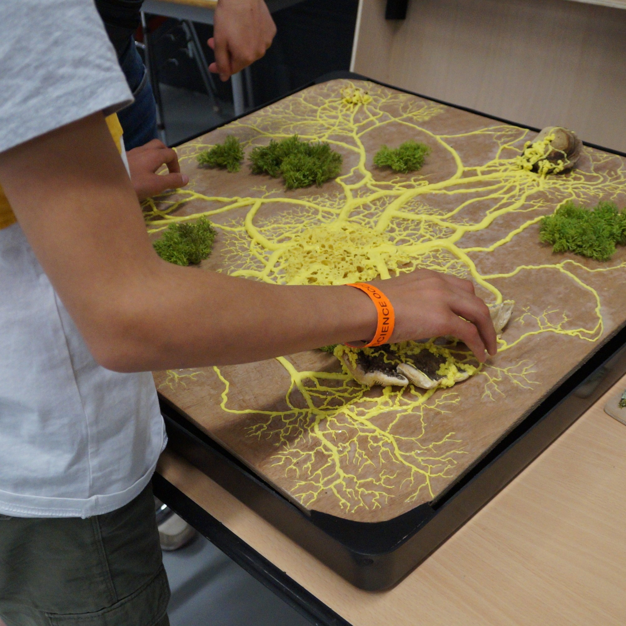 Sous l’oeil expert d’Audrey Dussutour, un blob tangible grand format a été réalisé par l’artiste plasticienne Guillemette Quintin. Avec ces outils, des projections et ateliers pourront être organisés dans les structures accueillant des publics déficients visuels.