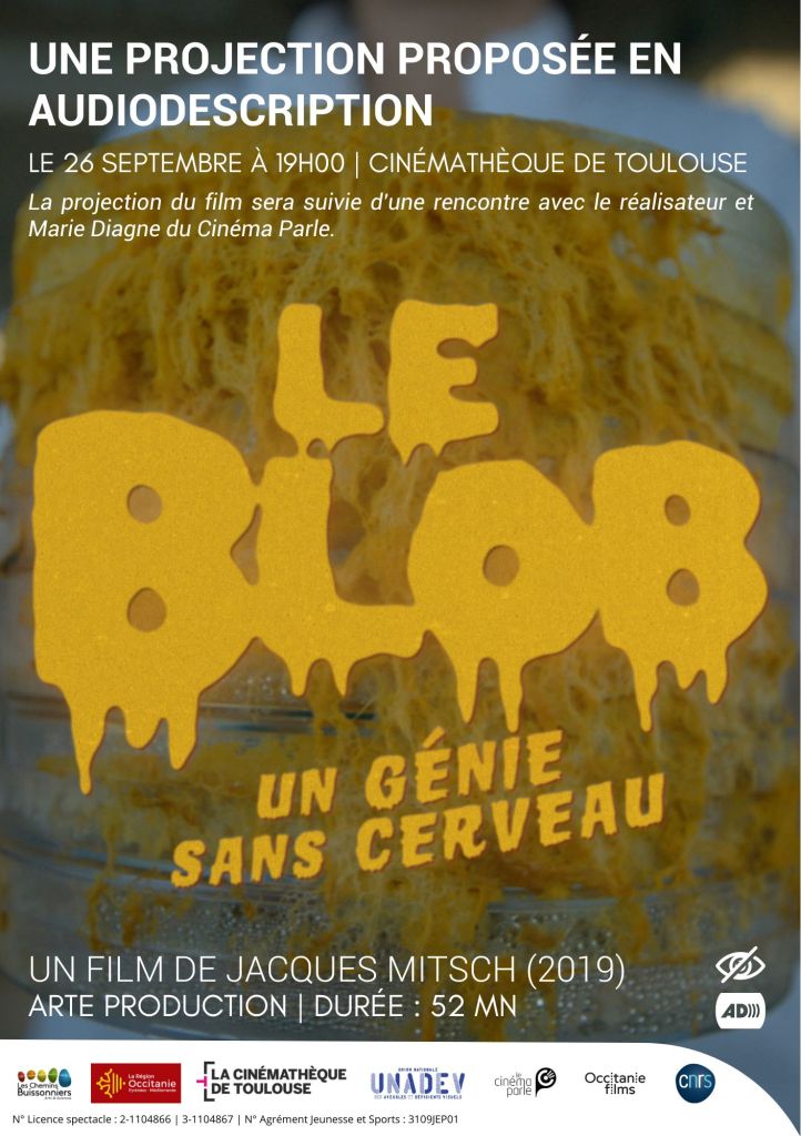 Mardi 26 septembre à 19h00, nous vous proposons de découvrir le film de Jacques Mitsch Le Blob, un génie sans cerveau (2019) en audiodescription à la Cinémathèque de Toulouse. Une expérience inédite accessible à toutes et à tous. La projection du film sera suivie d’une rencontre avec le réalisateur et l’audiodescriptrice Marie Diagne du Cinéma Parle.