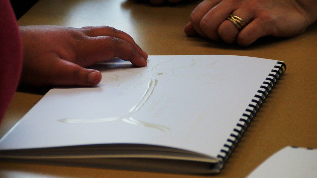 Ces ateliers s’accompagnent de livrets qui prolongent les informations reçues sur le cerveau durant l’atelier. Une traduction braille de ces livrets, avec schémas en relief, a été réalisée.