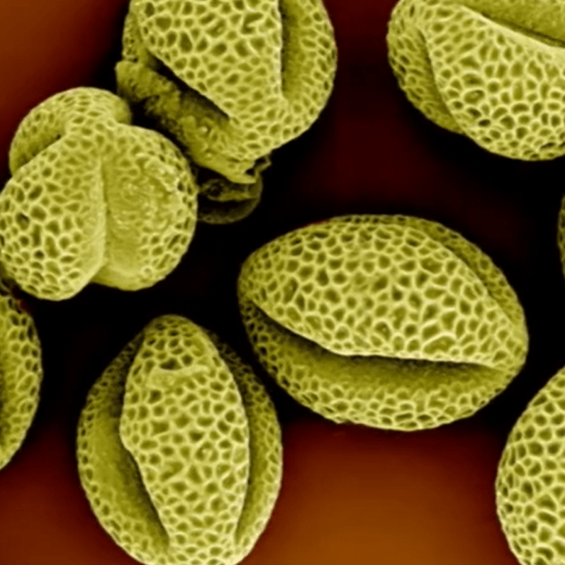 Les triptyques présentent douze espèces de pollens, dont on peut observer la diversité des formes.